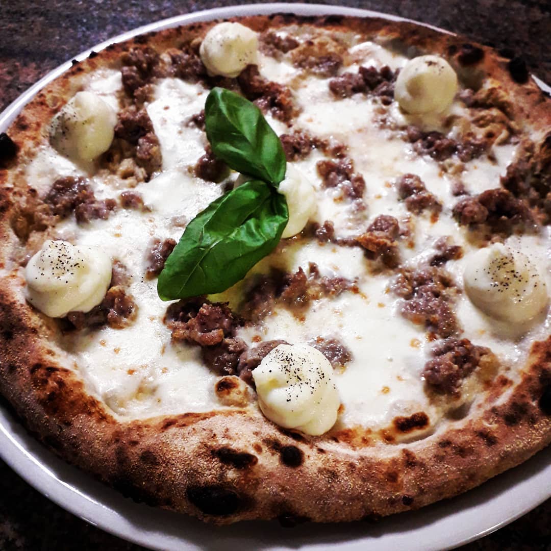 Mozzarella Fior di Latte Caseificio Zitola, Vellutata di Fagioli, Salsiccia di Maialino Nero Casertano e Fiocchi di Patate con una spolveratina di pepe.